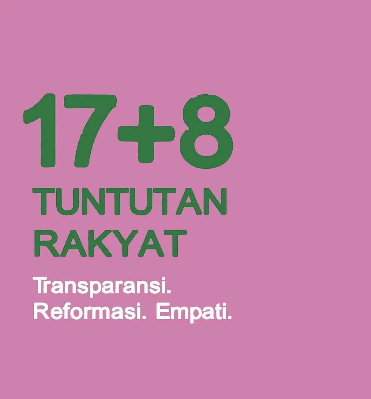 Dengan kondisi ini, publik masih menunggu konsistensi pemerintah dan DPR dalam menjalankan komitmen reformasi sesuai 17+8 Tuntutan Rakyat.