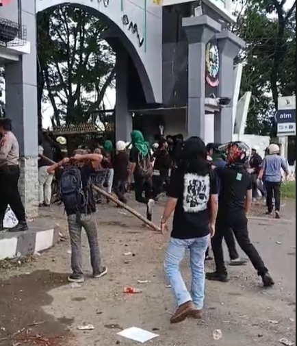 Koordinator Lapangan, Adriansyah Putra, menuding kericuhan dipicu oleh tindakan represif aparat. Menurutnya, emosi massa tersulut setelah melihat salah satu rekan mereka diduga mengalami penganiayaan saat berorasi di gerbang.