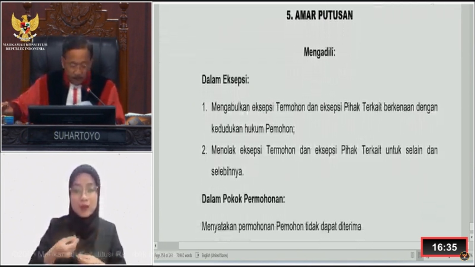 Sidang pembacaan putusan digelar Selasa (08/07/2025) dan dipimpin langsung oleh Ketua MK, Suhartoyo.