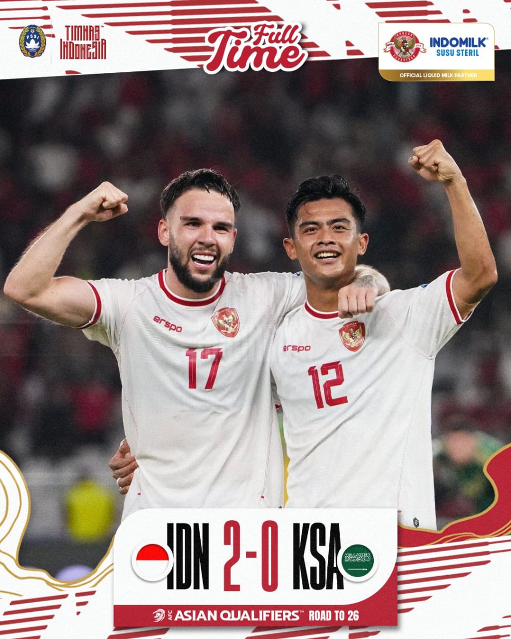NASIONAL, Kapitanews.com – Tim Nasional (Timnas) Indonesia berhasil mencatatkan kemenangan gemilang atas Arab Saudi dengan skor 2-0 dalam lanjutan Kualifikasi Piala Dunia 2026 Zona Asia.