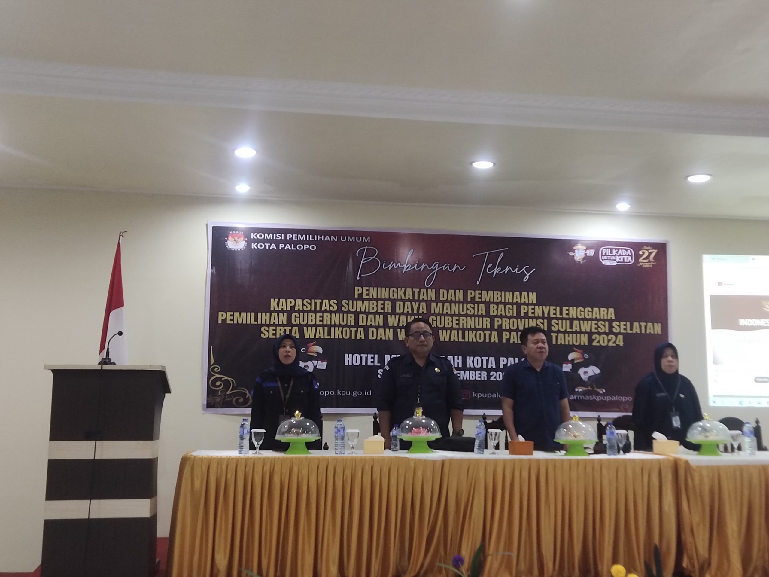 PALOPO, Kapitanews.com – Komisi Pemilihan Umum (KPU) Kota Palopo menggelar Bimbingan Teknis (Bimtek) dengan tema “Peningkatan dan Pembinaan Kapasitas Sumber Daya Manusia Bagi Penyelenggara Pemilihan Gubernur dan Wakil Gubernur Provinsi Sulawesi Selatan Serta Walikota dan Wakil Walikota Palopo 2024” di Hotel Mulia Indah pada Selasa (10/09/2024).