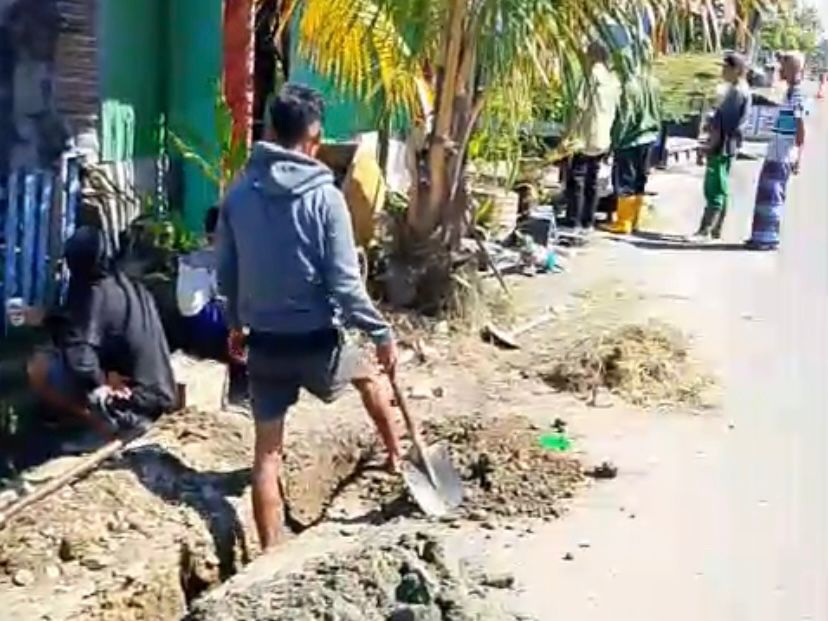 Pada Selasa (2/08/2025), tampak para pekerja mitra Perumda TM mulai melakukan penggalian di bahu jalan sebagai persiapan pemasangan pipa baru.