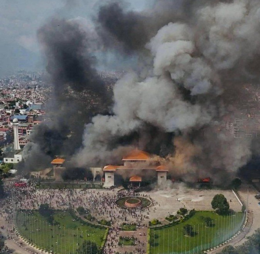 Kerusuhan juga merembet ke simbol-simbol negara. Gedung parlemen Nepal dibobol paksa lalu dibakar, begitu pula markas besar Partai Kongres Nepal.