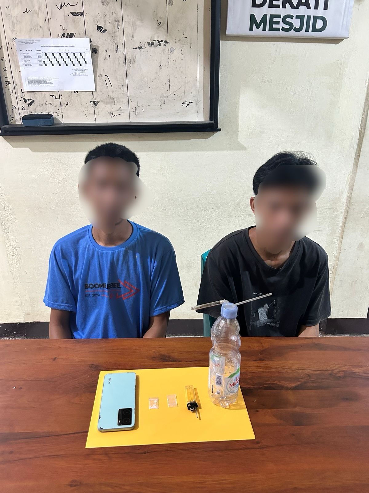 Petugas berhasil mengamankan dua pemuda, IM (35) dan FA (22), yang merupakan warga setempat, saat sedang mengonsumsi narkotika jenis sabu.