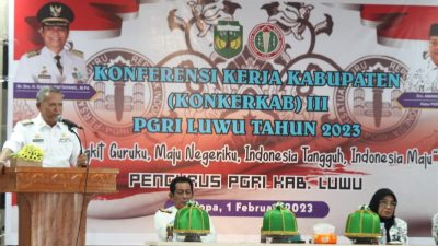 Basmin berpesan agar anggota dan pengurus PGRI menjadi visioner, guru yang mampu diteladani segala tingkah lakunya dengan cara berfikir konstruktif dan sehat Hadir Konkerkab III PGRI Luwu, Bupati Sampaikan Ini ke Guru Luwu Raya|February 1, 2023by Alvin LUWU, Kapitanews.id – Bupati Luwu, Dr. H. Basmin Mattayang menyampaikan beberapa pesan