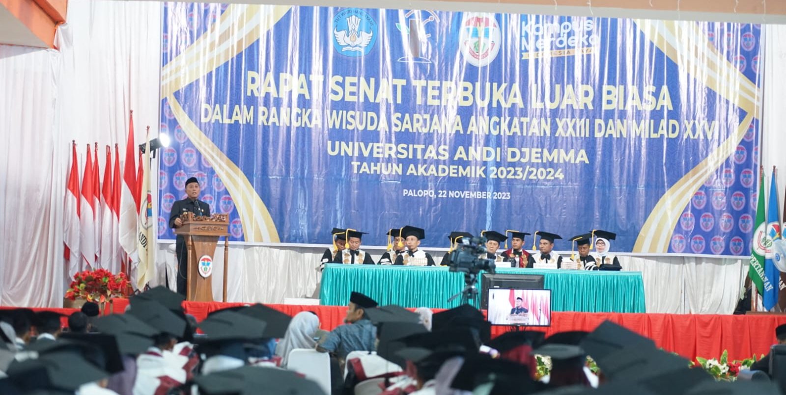 Universitas Andi Djemma, melaksanakan rapat senat terbuka luar biasa Universitas Andi Djemma, di Gedung Saodenrae Convention Center (SCC), Rabu, (22/11/2023).