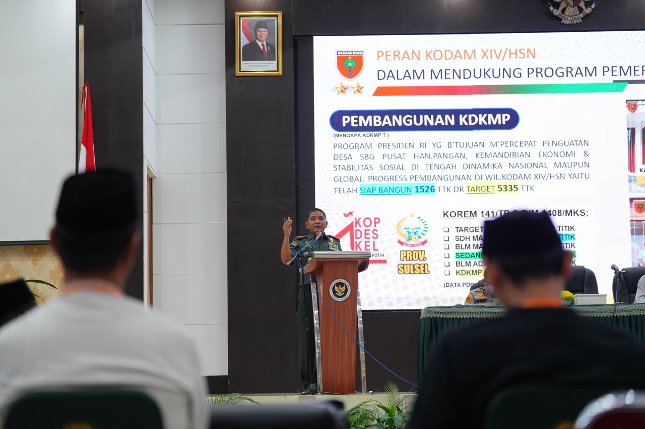 Dari perspektif pertahanan dan stabilitas wilayah, Panglima Komando Daerah Militer XIV/Hasanuddin, Mayor Jenderal TNI Bangun Nawoko, memaparkan kontribusi TNI dalam mendukung program strategis pemerintah.